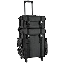 I've been using this makeup case and absolutely love it! I travel with the top case to every makeup appointment. There are two fold out trays that fit all my foundations, base products (primers, setting sprays, conceale